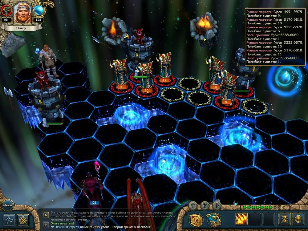 Пикируя с высоты, собираем всё бесхозное, после чего начинаем зачистку территории вокруг замка. Архимаги накладывают на себя «Магический щит». Через раунд – ещё раз. За время правильно проведённого поединка (до десятого раунда) они успеют скастовать «Магический щит» двадцать раз. Как только будет достигнут третий уровень «Хранителя», увольняем архимагов, забираем в войско северных воительниц и приступаем к более серьёзным боям.