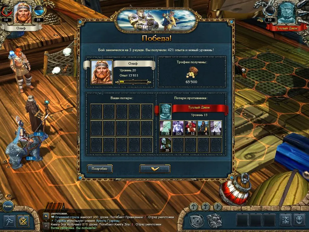 Что касается последующего боя с волхвом, то он также прошёл без потерь — помогли спецатаки валькирий. К слову, наибольшую пользу принесли «Ярость Гудриды» и «Стрелы Хильды». Чтобы оставить их умения на приемлемом уровне, я старался повышать «Дар Кристы», как наименее ценный. Из умений мага больше всего пригодилось наиболее доступное «Личное участие» и «Ледяные клинки», не дававшие противнику взять сундук и не оставляющие врагу другого пути, кроме как через ловушку.
