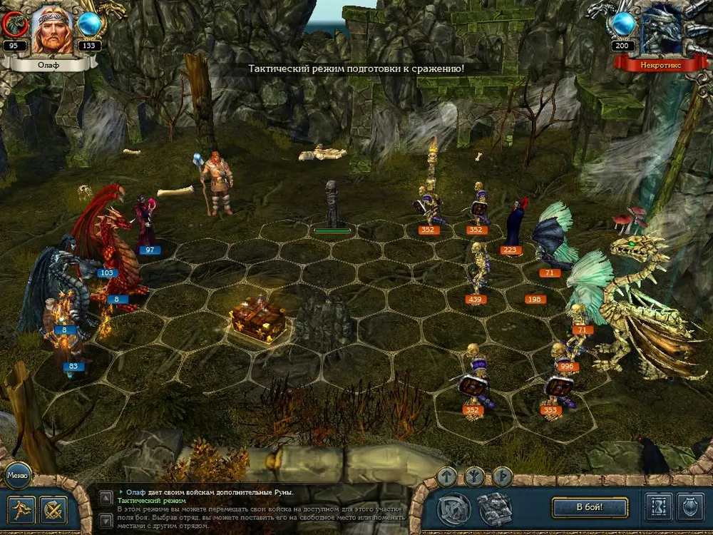Для усиления стоит купить королевских грифонов, в резерв: у них по 200 единиц здоровья, неплохие атака и защита. Плюс умение летать, подбирая сундуки на поле боя, и способность вызывать небесных стражей.