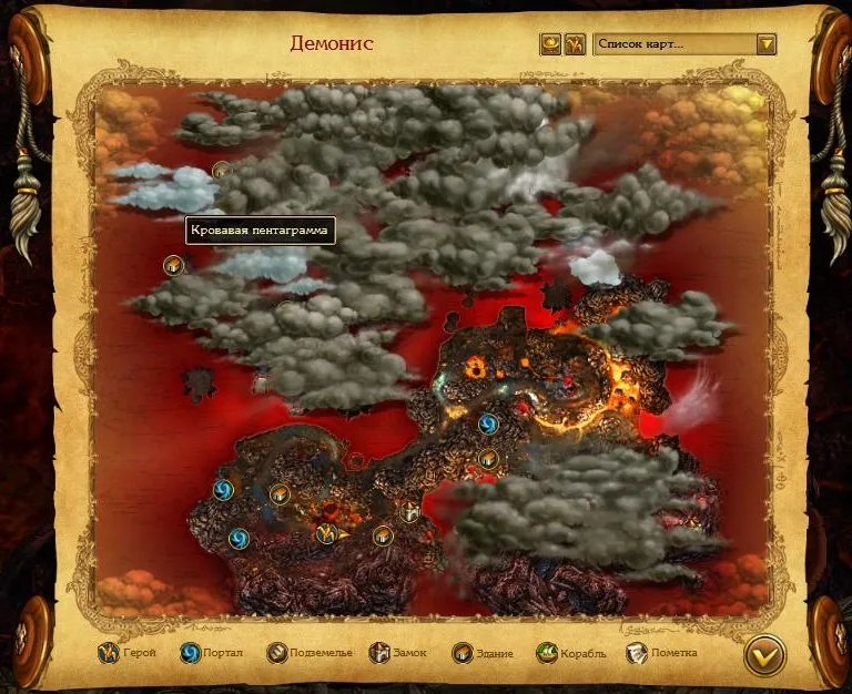 На удивление маленькая территория! Правда, Демонис доступен не весь: с вершины вулкана видны строения и мосты, обозначенные на карте, но попасть туда нельзя — проход закрыт, а коню запрещают летать.