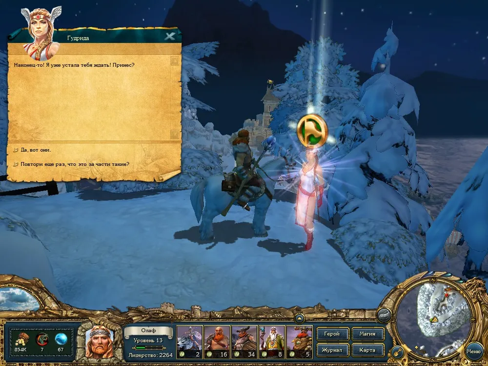 К валькирии можно пробраться, не вступая в бой с врагами, а отвлекая и заманивая их. Следующая по важности задачи: поговорить с волхвом Рунвальдом. Алхимик пошлёт вас в пещеру за грибами; при должной сноровке их также можно собрать, не вступая в бой. Сразу после взрыва Криста научит вашего коня летать. Дважды разговариваем с Рунвальдом, и нам открывается карта ещё одного острова. Хотите — зачищайте остров от всех врагов, хотите — собирайте всё, что плохо лежит и отправляйтесь исследовать следующие острова. Если вам не попалось заклинание «Ловушка», оставляйте в покое самые слабые отряды врагов — они пригодятся в дальнейшем, для получения титулов «Капканщик» и «Хранитель». (На Вестлиге мне не удалось выполнить задание по поиску капитанского кителя — нашлось только четыре ростка терний из пяти. В «стимовской» игре такой проблемы не возникло. Забегая вперёд — ростки терний вам ещё попадутся, и квест будет выполнен.)
