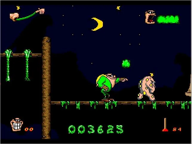 Это все было прекрасно, особенно в таких декорациях, как «Туалетные Болота», «Хребты Слизи», «Носовые Пещеры» и «Козявкобург». Посреди преодоляемых пространств скакали маленькие козявки, в воздухе плавали ярко-зеленые облачка, герой засасывался в огромные носы-телепортаторы, цеплялся за сопли-лианы, восстанавливал энергию, подбирая красный плащ, а, получив роковой удар, таял подобно Снегурочке. Где еще для попадания в бонус достаточно было спустить себя унитаз, и где можно было встретить колхозника с курицей в качестве одного из боссов?