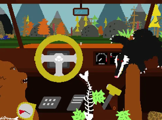 Самый смак заключается в том, что Медведь передвигается на автомобиле. Оперировать мы можем лишь одной лапой, чем заняты остальные конечности- неизвестно. Итак, мы можем управлять рулем, переключать передачи и давить на педали газа и тормоза, но всегда можно использовать только один предмет. Конечно же можно схитропопить и положить любой предмет попавший в кабину на педали. Например, если вы заедете в кусты, к вам в кабину может забраться барсук, и это дамы и господа, нечто. Зверюга начнет носиться по всей кабине и переключать все кнопки и рычаги... хотите узнать что бывает, когда барсуков сразу пятеро? А если с ними еще и осы? Смотрим видео снизу, а лучше качаем полную версию игры и падаем вместе со стулом.