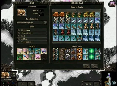 Участники дуэли имеют колоду карт, отображающую запас их магической мощи. Использование карты означает сотворение соответствующего заклинания. Соответствующая колода карт значительно ограничена у нейтральных монстров, играющих роль «мяса» для прокачки героев или роль преград в проходах, у каких-то мест и объектов.