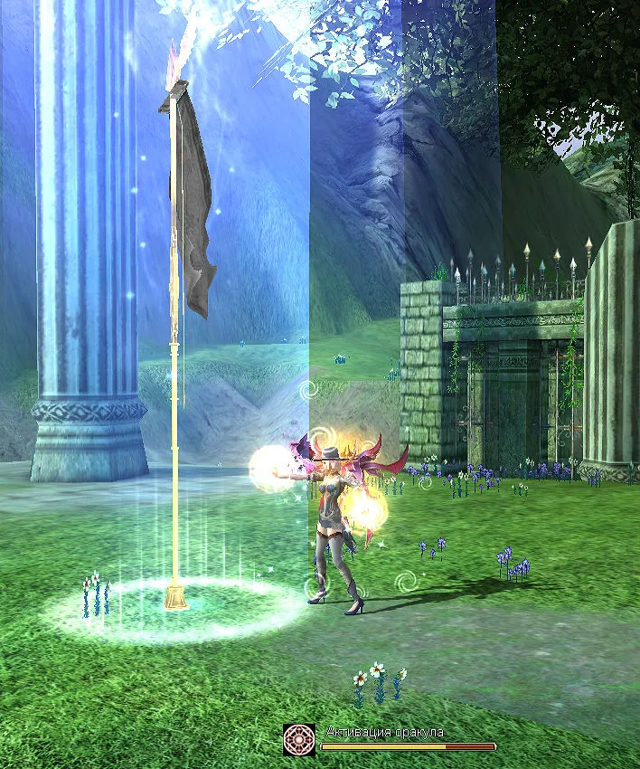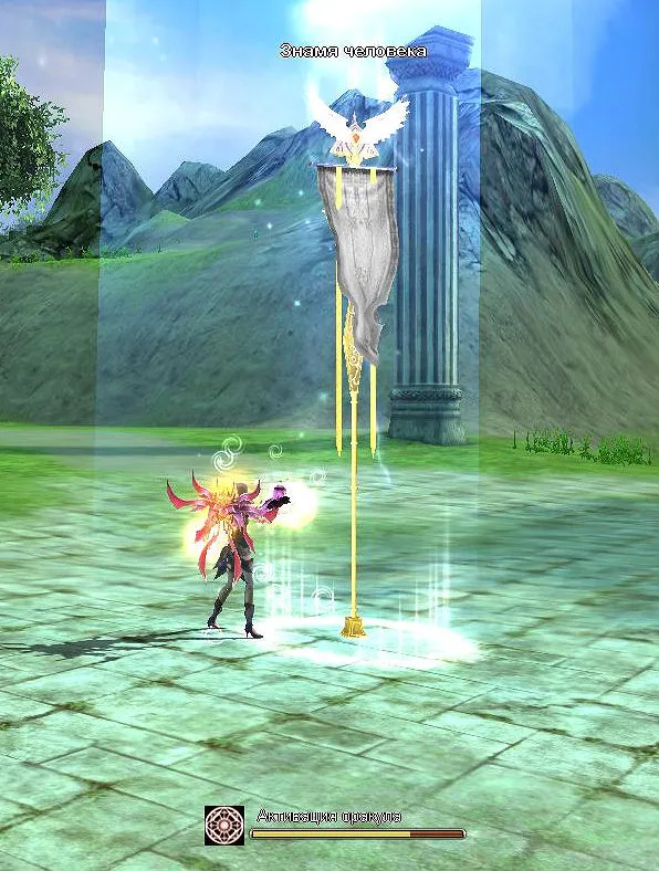 Цель: занять позицию со знаменем трех сфер(Небеса, Земля, Ад). За каждые 30 секунд, пока гильдия удерживает эту позицию, она получает одно очко.