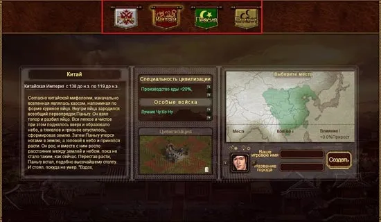 1. Для выбора империи кликните по одному из четырех флажков сверху