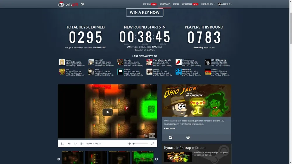 P.S. всего 1000 ключей, каждый час разыгрывается 20 ключей,