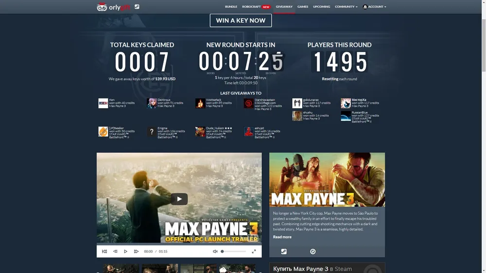 Возможность выиграть ключ MAX PAYNE 3 от orlygift