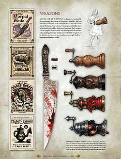 Оружия в игре не много, и из-за этого может показаться, что чего-то «не доложили», и многие люди, доходя до конца игры и собирая всё оружие удивленно говорят: «И это всё?». И единственное оправдание тут – креативность всего оружия и система апгрейдов. Ну, действительно, тут Вам и миниган стилизованный под перечницу, и чайная пушка, и конёк-булава, и классический тесак и даже бомба в форме кролика (правда, она больше подходит для прохождения игры, чем для победы над врагами, но разнообразие вносит), как по мне, любой безумный маньяк обрадуется, а Алиса и подавно. Ну и, не стоит забывать, что почти всё оружие имеет альтернативный режим.