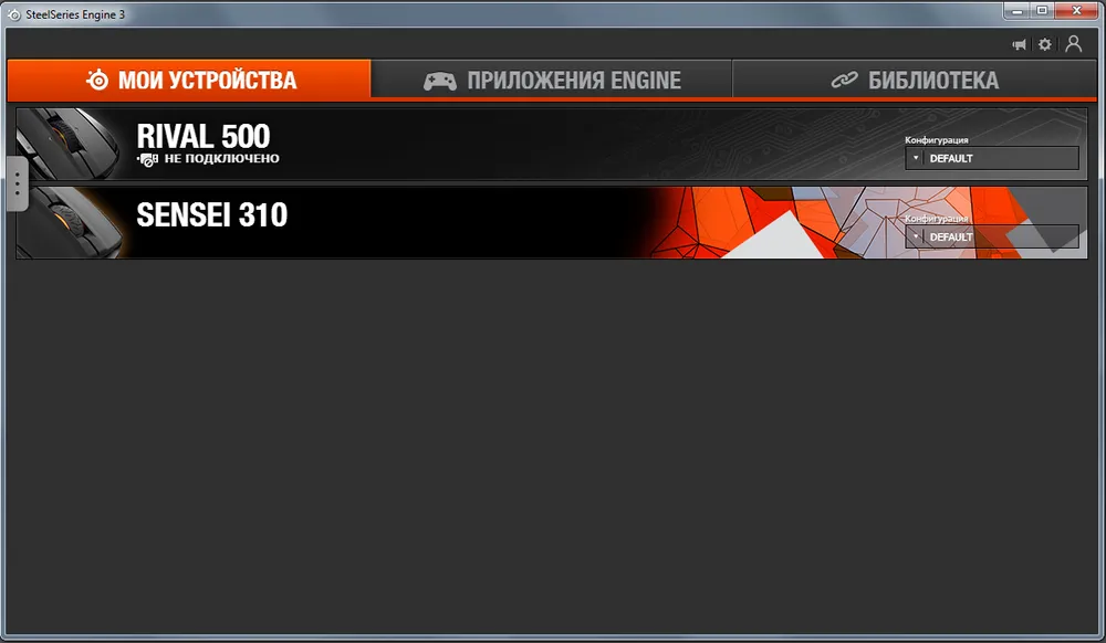 Как и все мыши SteelSeries, Sensei 310 использует фирменное мультиязычное (русский в наличие имеется) приложение SteelSeries 3 Engine, загружаемое с официального сайта компании-производителя. В принципе, и без него «грызун» вполне способен корректно работать, однако только программа откроет вам доступ ко всем настройкам и возможностям девайса. Если процесс ее скачивания и установки пройдет успешно, то новое устройство обязательно отобразится в стартовом окне.
