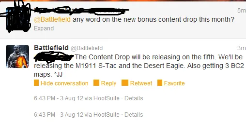 Официальный твиттер: "В наборе бонусных материалов будут M1911 S-TAC и Desert Eagle а также 3 карты из Bad Company 2"