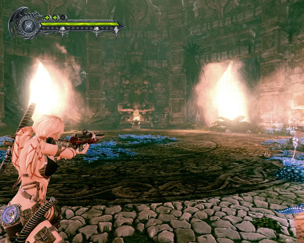 Не помню, что получил я дальше, но начнем с ружья. Огнестрельное оружие действительно иногда заставляют использовать, когда можно было обойтись клинками, но не так часто, чтобы это надоедало. Стрельба реализовано так-себе, но мы же не в шутер играем, верно? Сравнивать с X-Blades не буду, ибо это - практически совсем другая игра.
