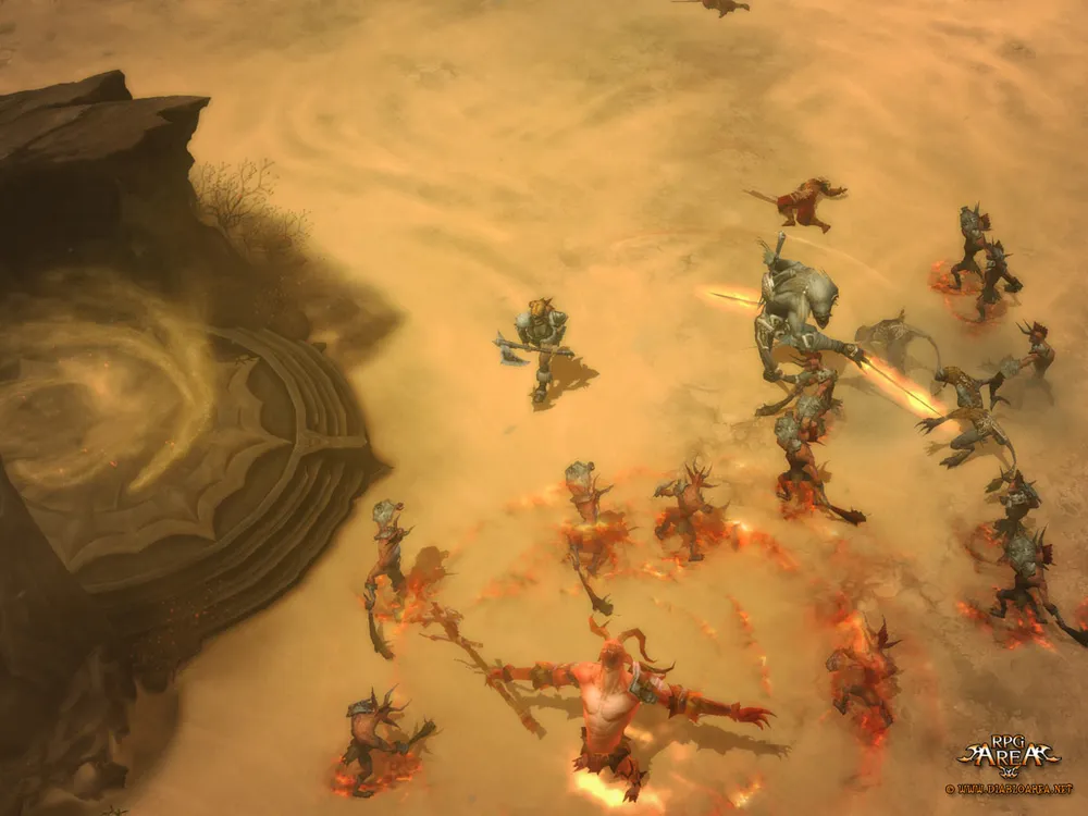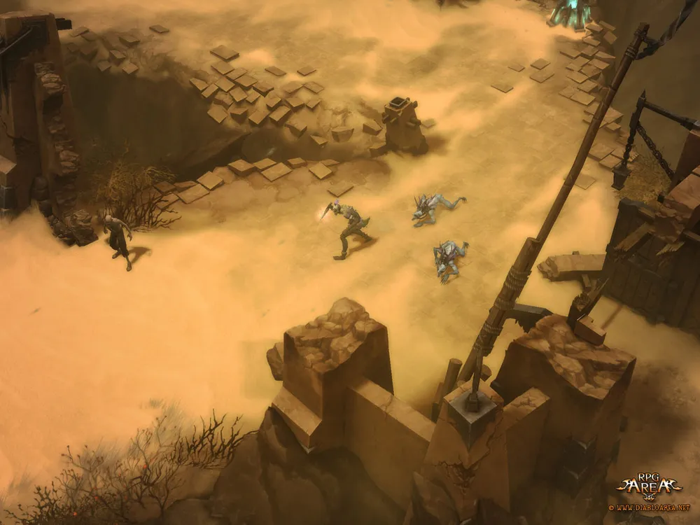 Стоило ожидать, что множество демонов атаковали меня, буквально выйдя из песка. Некоторые, такие как Воин Лакуни (Lacuni Warrior) и Надсмотрщика за Падшими (Fallen Overseer) выглядели вполне привычно как демоны, с задранным к верху осанкой и горящими мечами в каждой руке. Также были и пустынные создания, такие как Рой (Wasp), которые летали то тут, то там, периодически извергая маленьких детенышей роев. Одним из наиболее волнующих существ оказался Песчаный Дервиш; он вращался и витал вокруг да около, используя это вращение, чтобы нанести сильный оглушающий удар с эффектом отталкивания.