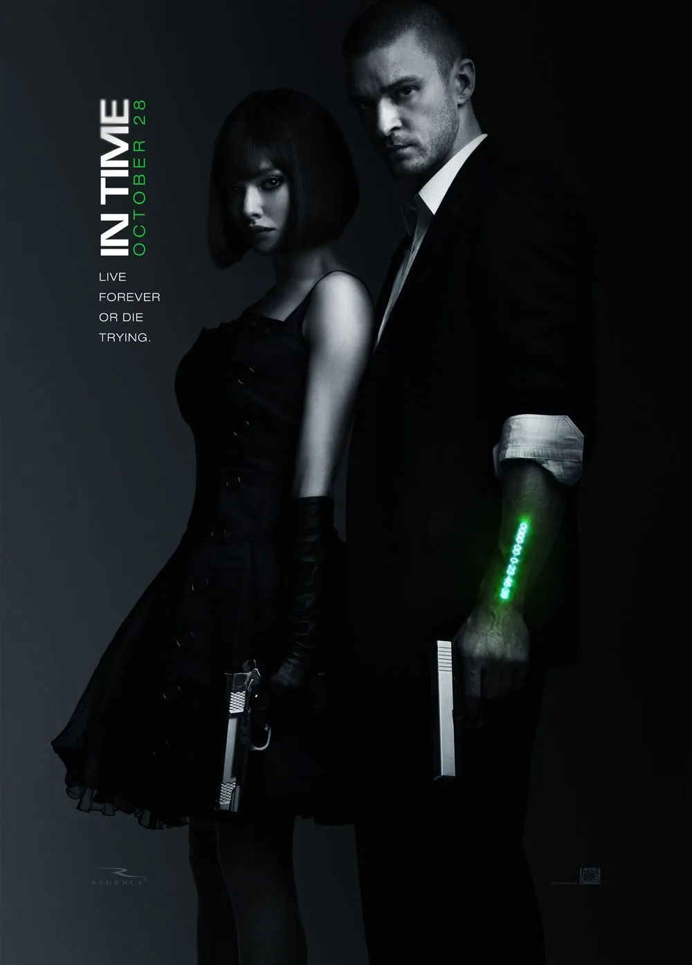 Сюжет: Добро пожаловать в мир, где время стало единственной и самой твердой валютой, где люди генетически запрограммированы так, что в 25 лет перестают стареть. Правда, последующие годы стоят денег. И вот богатые становятся практически бессмертными, а бедные, как всегда, обречены сражаться за жизнь. Уилл, бунтарь из гетто, несправедливо обвинен в убийстве с целью грабежа времени и вынужден, захватив заложницу, пуститься в бега. Так, ежеминутно рискуя жизнью, эти двое становятся грозным оружием в борьбе с системой. Но вот вопрос: кто кого? А может быть, в дело вмешается третья сила?..