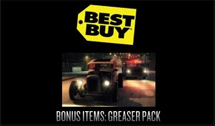 Издание от bestbuy.com, в которое входит Greaser Pack - два спортивных автомобиля в стиле хот-род, кожаный гоночный костюм и кожаная куртка и высокие ботинки.