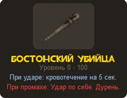Бостонский убийца - одно из двух новых оружии для скаута, имеет идентичные боевые параметры с обычной бейсбольной битой, также новая дубина имеет два уникальных атрибута: