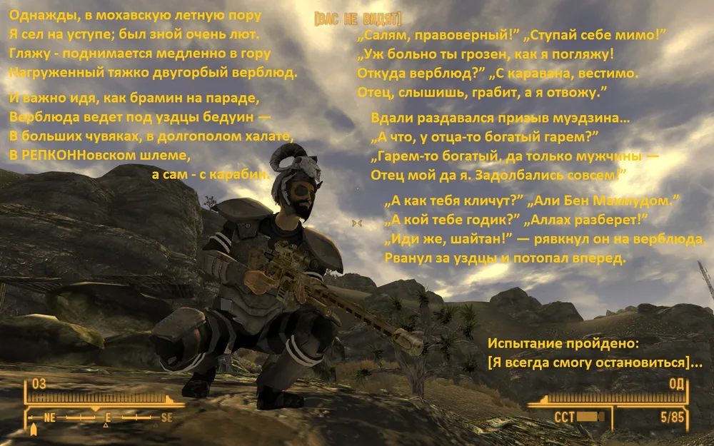 Слегка измененный стишок показывает, что у главгероя явная передозировка веществами (пройденное испытание - роль индикатора).