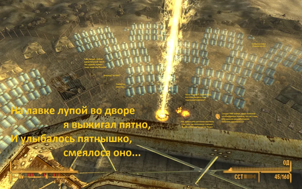 Тупняк NPC-шников и жесткая (но иногда глючная) заскриптованность их действий.