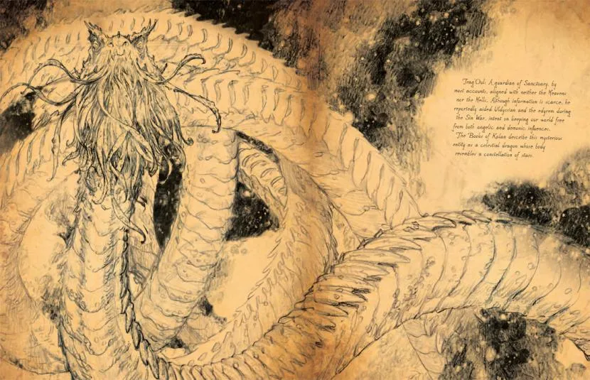 Есть еще одно существо во вселенной Diablo, которое наверняка связано с творцом и которое важно вспомнить: Траг'Оул. Звездный дракон и хранитель равновесия Санктуария, не связанный ни с Небесами, ни с Преисподней. Внешне он выглядит как память о физических оболочках Ану и Татамета, и возможно, он и ему подобные были созданы непосредственно творцом, чтобы хранить равновесие миров, когда дух Ану устанет или не сможет больше наблюдать за миром. Но за событиями Diablo и Diablo 2 творец наверняка наблюдал лично.