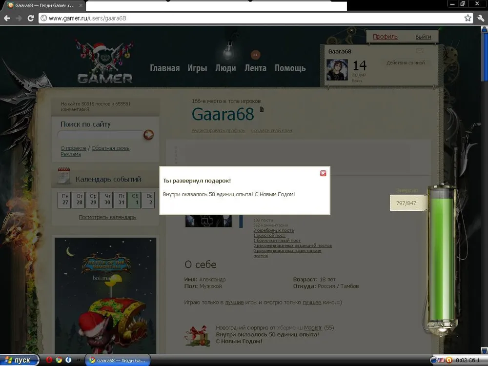 С новым годом всех геймеровчан! Всем нам кто-то подарил подарок (имеется в виду на сайте). Предлагаю тут провести опрос, кому что попалось, а так же можете писать в коментариях об играх которые вам достались (если достались;)) Мне например дали 50 ед. опыта=)