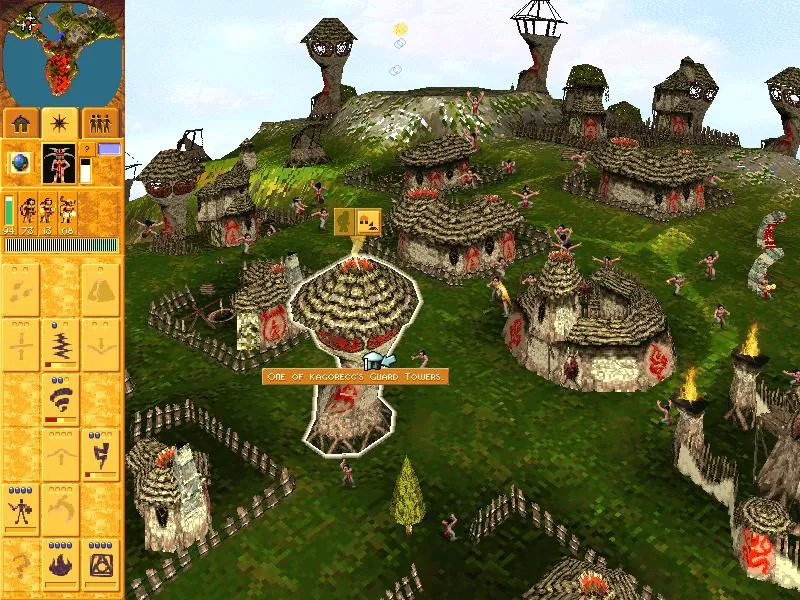Надлежащая атмосфера создается во многом благодаря отличной графике. Можно видеть, как ваши последователи падают на колени, когда к ним приближается шаман, как появляются тропинки там, где они проходят чаще всего, и еще множество таких же милых мелочей. Замечательная стратегия от Bullfrog, обладающая красивой трехмерной графикой, интересным сюжетом и крайне затягивающим игровым процессом.