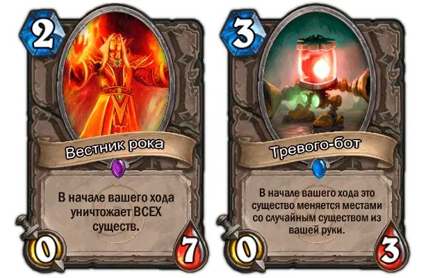Игрок ставит на поле "Вестника рока" и затем "Тревогобота", и оба доживают до начала его следующего хода.- 1. Бот успеет поменяться, затем все умрут.