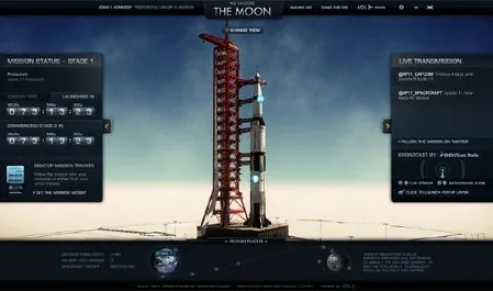 Начиная с 90-минутного отсчета, предшествовавшего состоявшемуся 16 июля 1969 года запуску, сайт будет "следить" за путешествием космического аппарата от Земли до нашего естественного спутника. Посетители смогут, как заявляют разработчики, увидеть "возрожденные в анимации ключевые события четырехдневной миссии, включая первый полет корабля Apollo 11 по лунной орбите и отделение лунного и командного модулей".