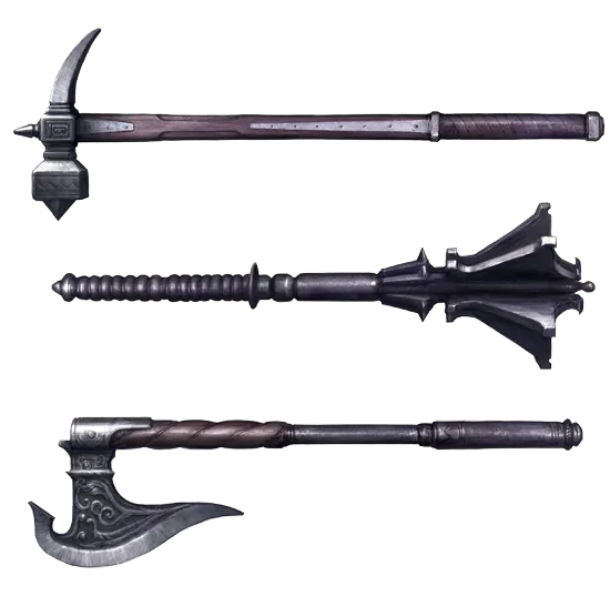 1) В игре будет 30 видов оружия, среди них топоры, булавы, алебарды, разнообразные мечи и кинжалы.