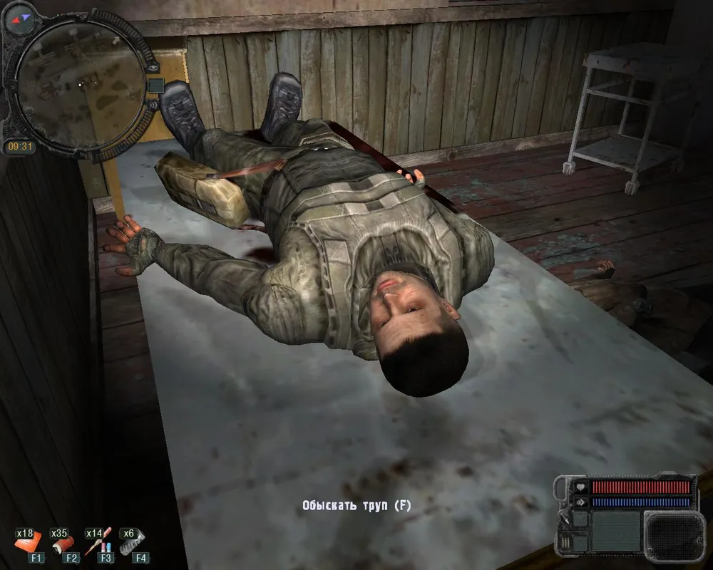 Вот странность - куда-то исчез Тремор - врач со Складовска. Явившись на место встречи мы не находим там Глухаря. Немного поблуждав вокруг кранов, натыкаемся на труп Данилы возле странного дома. Открываем дверь - вот так встреча! Тремор сосет кровь из остывшего тела Глухаря. Далее следует немая сцена, которую прерывает выстрел, снесший голову незадачливому вампиру.