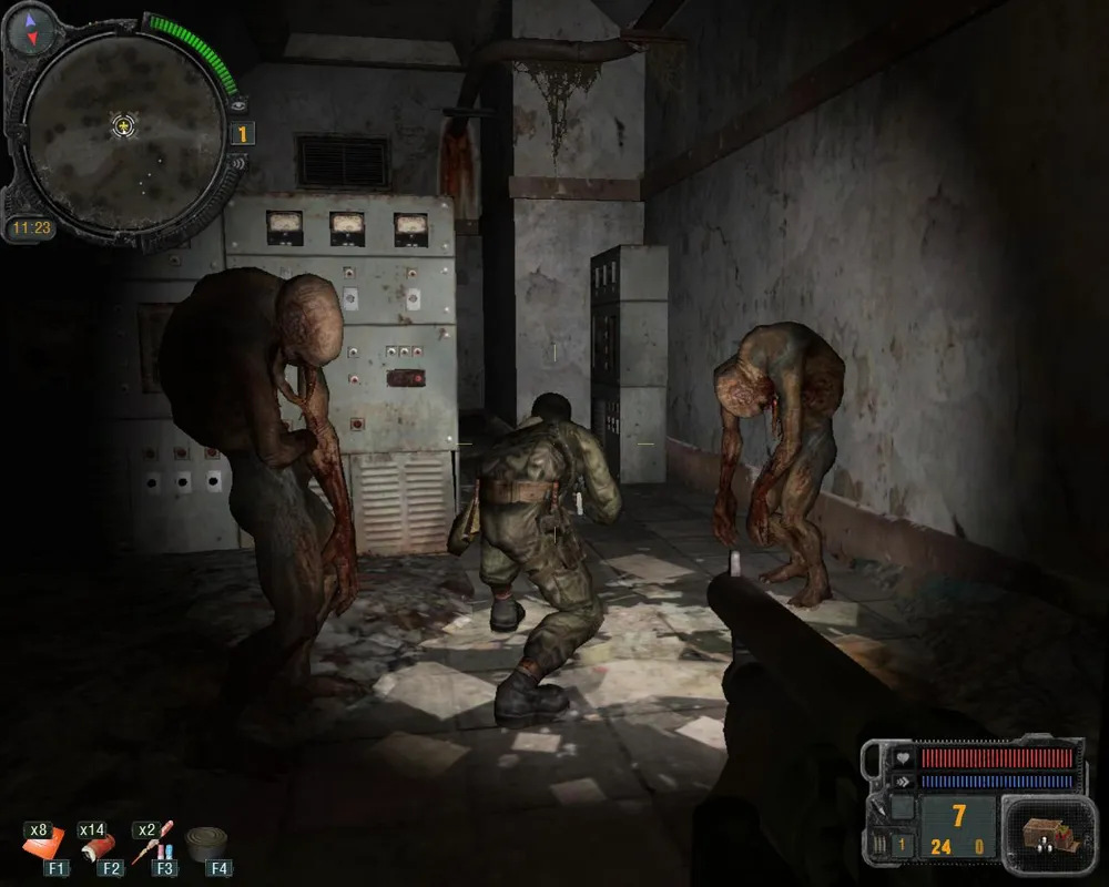 Любого ведущего мы можем попросить проводить нас до нужного места, что полезно, учитывая размеры локаций. Кроме того, при выполнения квеста в команде со сталкером мы автоматически перемещаемся в нужную по квесту часть уровня. Теперь сталкерские группы могут воевать с бандитами и монстрами, что было и раньше, но носило заскриптованный характер. Теперь же это часть жизни уважающего себя сталкера. Как все знают, от ЧН Зову Припяти достались система апгрейда\ремонта оружия и интересная система поиска артефактов.