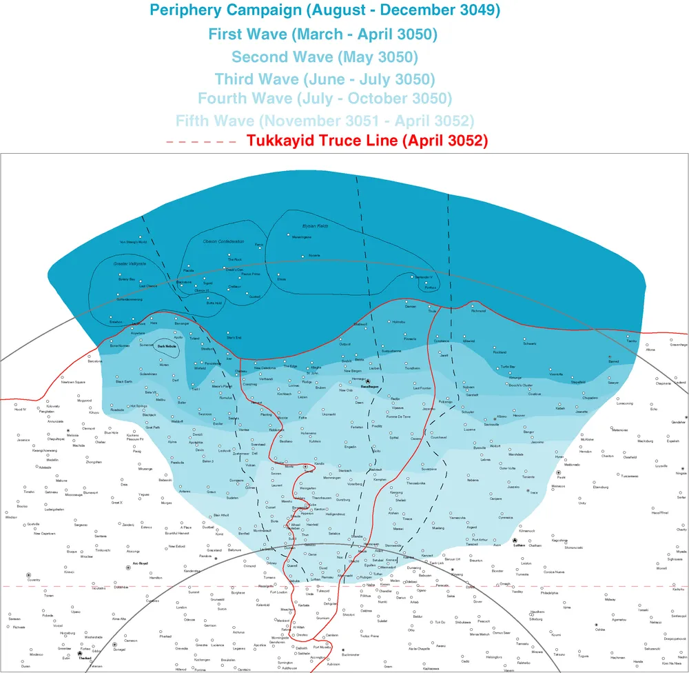Последняя планета Периферии пала к ногам Кланов примерно в конце 3049 года, и захватчики провели последние два месяца этого года, укрепляя свои завоевания, переправляя на них минимальную гражданскую силу, чтобы установить основные службы и организовать склады снабжения.