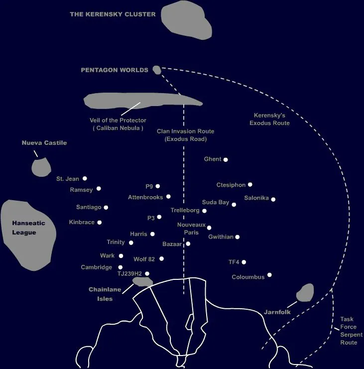Сразу после начала боевых действий между Домами, в ходе падения Звездной Лиги, в 2784 году, генерал Керенский, главнокомандующий вооруженными силами Звёздной Лиги, покинул Звёздную Лигу вместе с примерно 80% её вооружённых сил. Их корабли покинули раздираемые гражданской войной миры, незамеченными и ушли далеко за границы освоенного пространства, что вошло в историю как первый Исход. После выхода из Периферии, на расстояние более чем 1,300 световых лет от Терры, Керенский и его последователи обосновались на полупригодных для жизни звездных системах за большим шаровидным скоплением, скрывшим их от Внутренней Сферы.