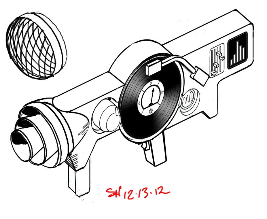Потом туман начал рассеиваться, и дабстеп-пушка приняла форму пистолета с вращающейся диджейской пластинкой, измерителя уровня звука и сабвуфера, который бы при выстрелах пульсировал. Затем я реализовал все то же самое, но уже в форме базуки. В финальном варианте я еще добавил АйПодоподобные штуки, удерживающие пластинку-проигрыватель, прикрутил парочку регуляторов громкости и прикрепил мегафон на дуле пушки. В эту версию дабстеп-пушки мгновенно влюбилась вся команда, и процесс разработки двинулся дальше.