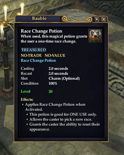 В общем зеленый змий бутыль позволяет сменить расу в игре EverQuest II на любую, кроме собственной (то есть той за которую Вы в данный момент играете)