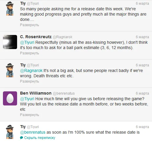 Очередные спекуляции по поводу даты релиза. Твитер Tiy.