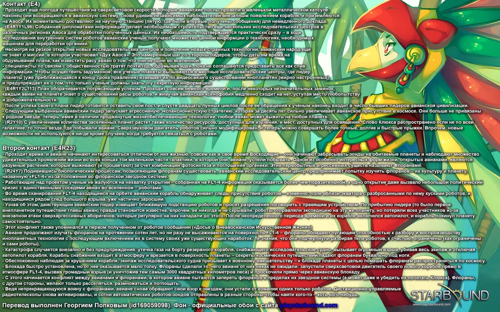 - Работающие над проектом ученые не жалуются на нехватку открытий – собранная на FL1-4 информация оказывается более чем поразительной, а одно открытие даже вызвало небольшой политический кризис с единственными соседями авиан во вселенной – роботами.