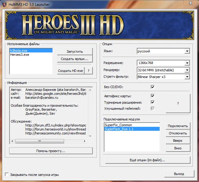 После множества бета версий и релиз кандидатов наконец состоялся релиз HDmod'а третьей версии. Данный мод совместим с SoD/WoG/TE/WT/ERA и собранием от Буки. Кроме возможности запускать игру в высоком разрешении и в окне HD мод включает исправления багов оригинала, турнирные правки баланса, улучшенный генератор карт и много других возможностей