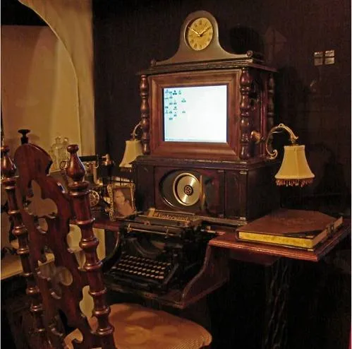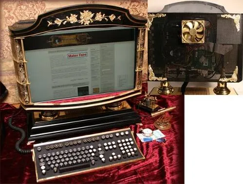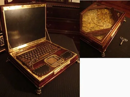 Корпус этого ноутбука изготовлен владельцем ресурса Datamancer Риком Нэги (Rich Nagy) из красного дерева, листового металла и никеля. Кнопки клавиатуры из стекла и меди, места для ладоней около тачпада покрыты кожей. Наиболее же интересная модификация – кнопка включения, выполненная в виде заводного механизма старых часов, причём ключ действительно нужно повернуть для запуска ПК. Компьютер, масса которого составляет 4,5 кг, собран на основе машины Hewlett-Packard ZT1000 и работает под ОС Windows XP и Ubuntu Linux.