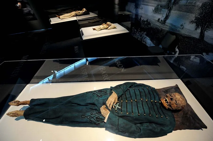 6. Мумия Михаила Орловица (Michael Orlovits), который родился в Ваце, Венгрия, в 1765 году. Мумии членов семейства Орловиц были обнаружены в подземных усыпальницах в Ваце в 1994 году, во время реконструкции доминиканской церкви. Холод, сухость воздуха в крипте, а также сосновое масло позволили телам мумифицироваться и сохраниться до наших дней.