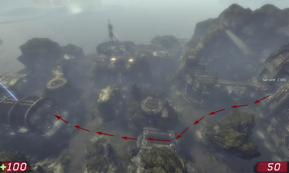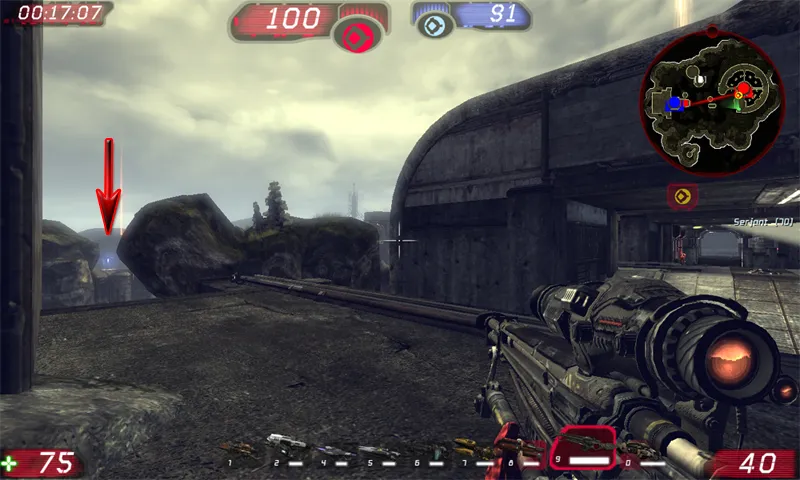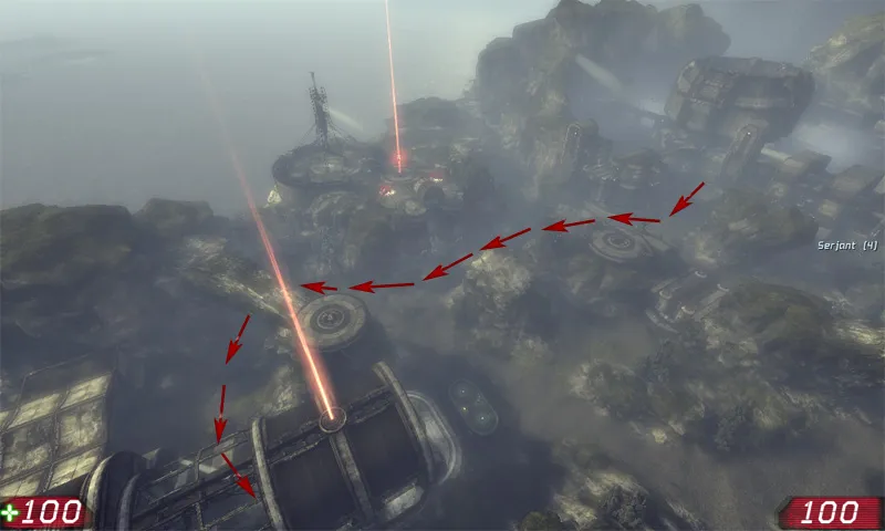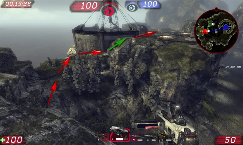 Одной из самых удачных точек для снайперов является хребет посредине карты. Забраться на него можно воспользовавшись телепортом, прыгнув на небольшой выступ.