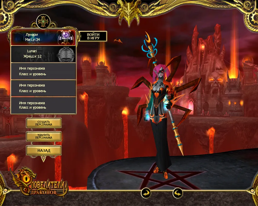 Основной персонаж у меня маг и она тоже женского пола. Зовут её тоже Лунари, но уже по-русски.