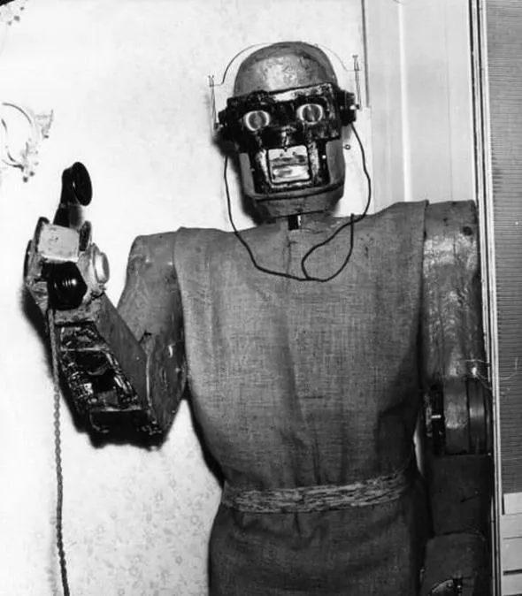 Этот кото-робот мяукал и моргал глазами. Был создан для отпугивания мышей и крыс.