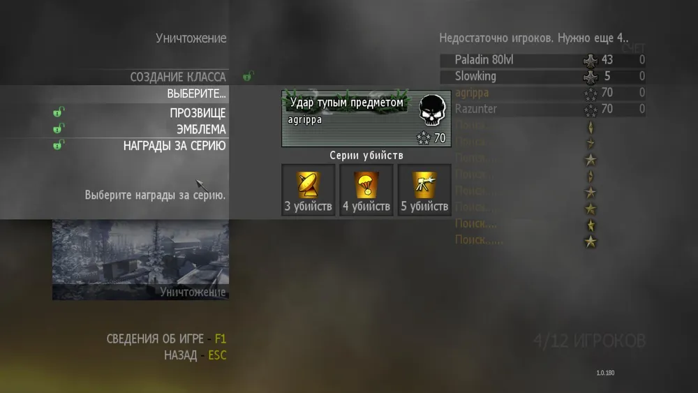 Если вы много играли в «штаб, повышенная сложность», то для «уничтожения» придется переучиваться. Ибо после повышенной сложности — обыкновенная кажется какой-то чертовски... сложной. Раньше вам достаточно было две пули в неприятеля выпустить, и он уже труп. И кто быстрее на курок нажимал, тот в дамках и оказывался. А когда мы начали перешли в «уничтожение», товарищи по команде порой громко ругались матом и вопили, что играть невозможно, ибо во врага надо обойму всадить, дабы он, сволочь, сдох наконец!