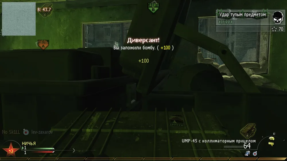 Удалось добежать до точки, заложить бомбу и продержаться. Через 7 секунд рванет. У противника пока что нет шансов. Ведь на само разминирование уйдет 4 секунды, а еще нас двоих убить надо