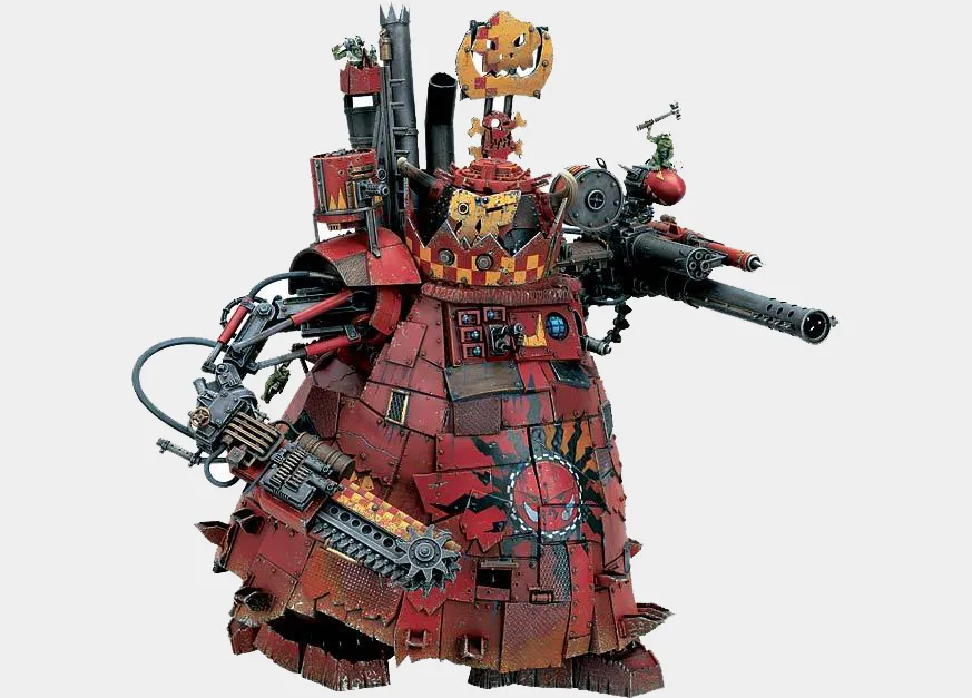Упертый танк - переделанный под орочьи нужды имперский "Леман Расс". Медленная, но чрезвычайно мощная тяжелобронированная машина.