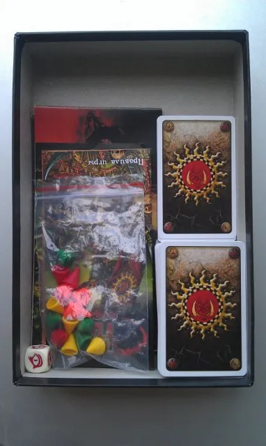 По сути, это пасьянс, вы собираете зеленых и превращаете их в очки своей победы. Но, если вы соберете один из строев, вы можете пойти в атаку на незавершенный строй своего оппонента и (если вам улыбнется удача) разогнать в нем всех воинов, а добычу забрать себе. В игре присутствуют орудия, которые состоят из нескольких карт, 1-2 карты самого орудия и одна карта управляющего орудием, если вы вытянули управляющего, вы имеет право забрать у других игроков (если у них есть) карты этого орудия. Боевые машины существенно приближают вас к заветному, полному строю.