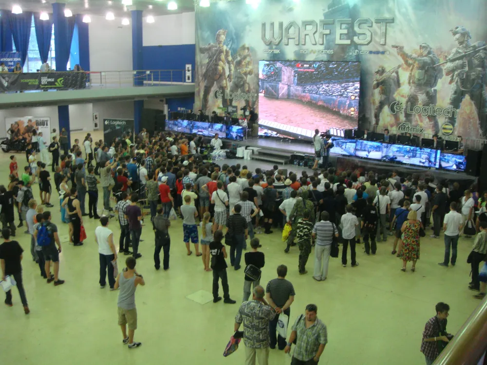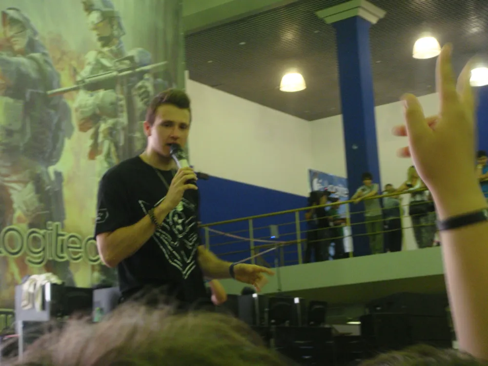 Стоит заметить что ведущие игру знали, мягко говоря, не очень, из-за чего оговорки случались довольно-таки часто. Настал черед еще нескольких конкурсов, в которых я так же не принимал участие. Между этими конкурсами ведущие переодически бросали в толпу(приемущественно в центр) магнитики, наклейки, жетончики, футболки и т.п. На мое несчастье один из них решил бросить футболку в мою сторону, и я рефлекторно ее поймал. В тот же самый момент в футболку вцепилось несколько рук, и начали тянуть ее в свою сторону. Кое-как сбросив с себя всех, кроме очень маленького и очень толстого мальчика(лет 9-10) я все же уступил ему футболку(не драться же с ним, ей богу). Далее приехали киберспортсмены из различных команд. Играли они против нескольких заранее выбранных посетителей, и играли достаточно неплохо(если учесть что раньше в варфэйс играл, кажеться, только Максим "Имбо"). Например один из киберспортсменов, кажется из команды по КС даже не догадывался, что можно прицеливаться, и стрелял по КС`овски, т.е. на глазок по 2-3 пульки.