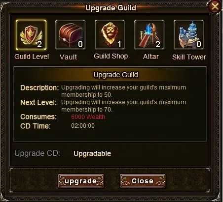 Upgrade Guild – откроет доступ к улучшениям в гильдии