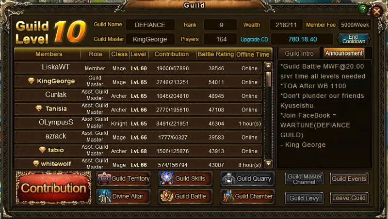 Вклад также превращается в валюту для покупки героем гильдийных умений, предметов в гильдийном магазине и во время алтаря и гильдийного дерева.