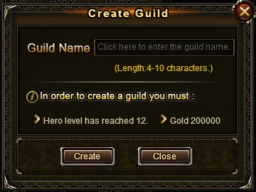 Игроки могут создать гильдию после достижения 12 уровня и если не являются членами уже созданной гильдии.
